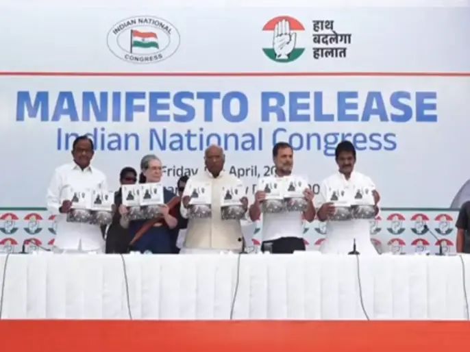 कांग्रेस पार्टी ने 2024 लोकसभा चुनाव के लिए घोषणापत्र जारी कर दिया है। अपने घोषणापत्र में कांग्रेस ने 5 न्याय की बात की है। पार्टी अध्यक्ष मल्लिकार्जुन खड़गे और कांग्रेस सांसद राहुल गांधी की मौजूदगी में इसे जारी किया गया।