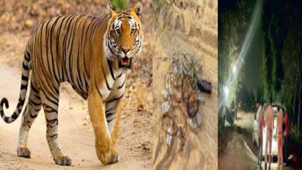 जंगली सुअर चीतल से पेट भर रहा बाघ