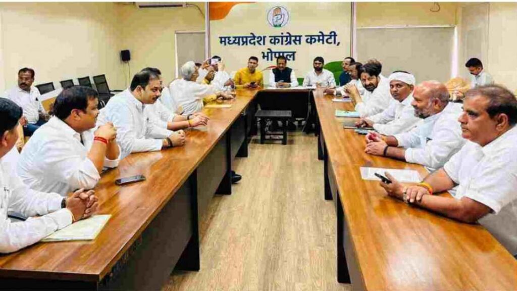 - प्रदेश कांग्रेस कार्यालय में मंगलवार को हुई बैठक में मोहन यादव सरकार के खिलाफ मुखर आंदोलनों की रणनीति बनाई गई। साथ ही जमीनी स्तर पर संगठन मजबूत करना जोर दिया गया।