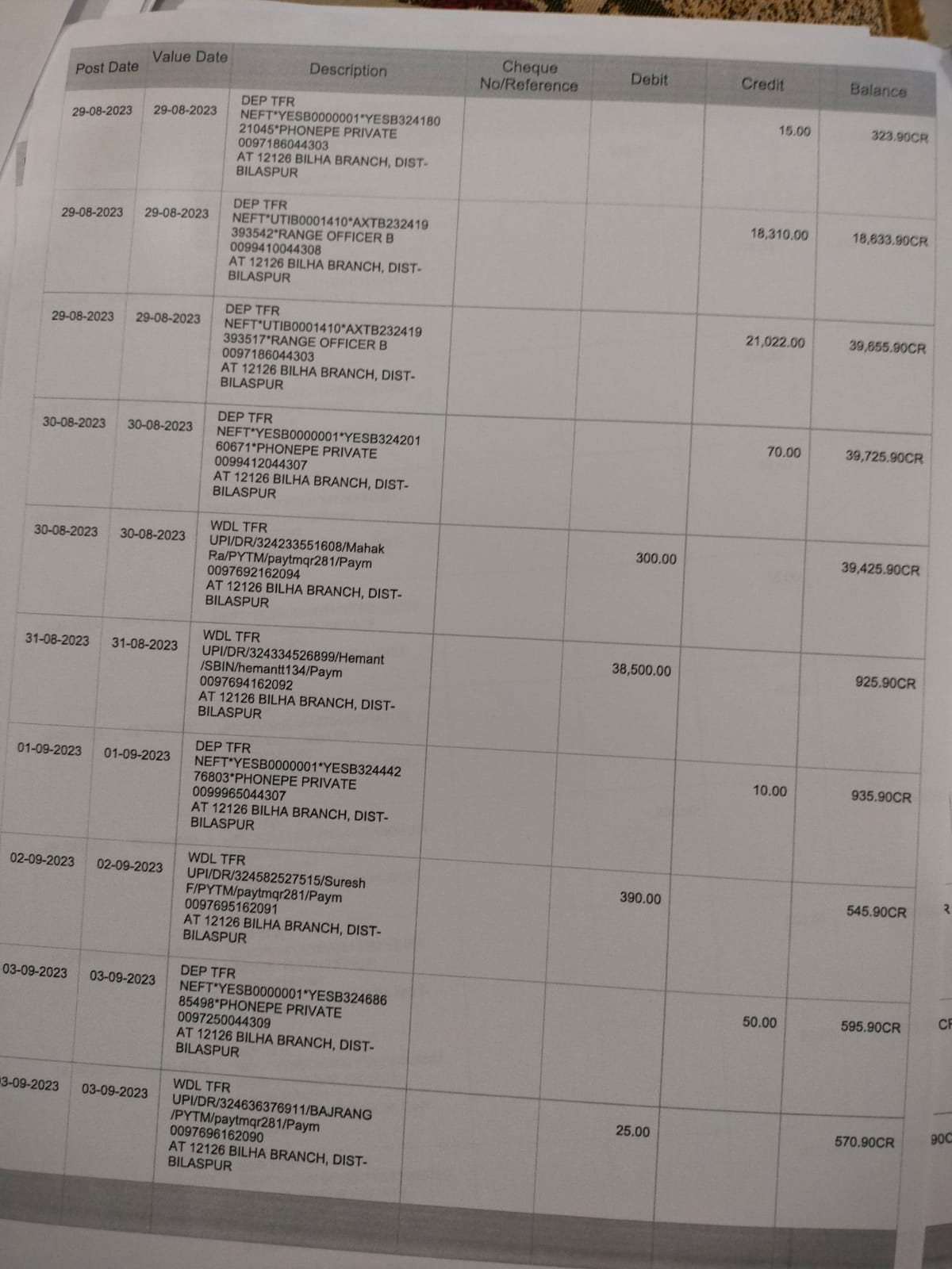 इसके अलावा प्रदीप कुर्रे, रामकुमार दुबे, चांदनी, कमला बाई और हेमंत जैसे कई निजी खातों में भी भारी रकम डाली गई।