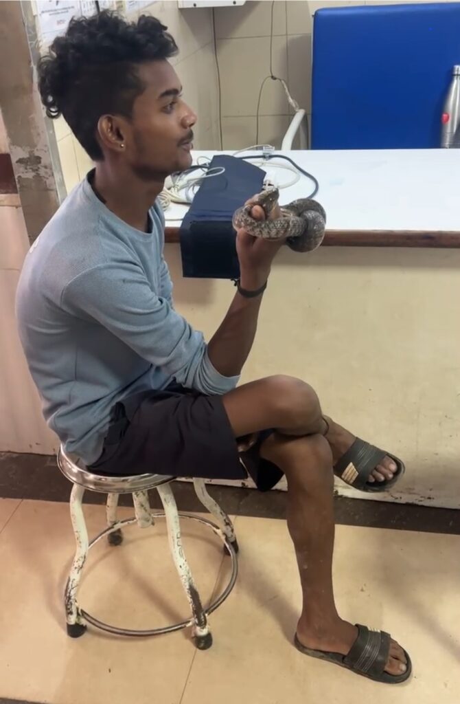 जैसे ही राकेश सांप को हाथ में पकड़कर अस्पताल पहुंचा, मरीज और स्टाफ हैरान रह गए। कई लोगों ने इस अनोखी घटना का वीडियो बनाया, जो अब सोशल मीडिया पर तेजी से वायरल हो रहा है।