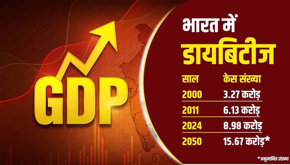 भारत डायबिटीज और हाई ब्लड प्रेशर के टाइम बम पर खड़ा है. लेंसेट इंडिया की रिपोर्ट के मुताबिक भारत में लगभग 10 करोड़ लोग डायबिटीज से पीड़ित हैं. 2030 तक यह आंकड़ा दोगुना होने की आशंका है. अब नेचर जर्नल में प्रकाशित एक नई रिपोर्ट ने बेहद भयावह भविष्यवाणी की है. इस रिपोर्ट में कहा गया है कि अगले 30 सालों में यानी मोटा-मोटी 2050 तक डायबिटीज देश के लिए इतना परेशान करने वाला होगा कि यह देश पर अर्थव्यवस्था का दूसरा सबसे बड़ा बोझ बन जाएगा.