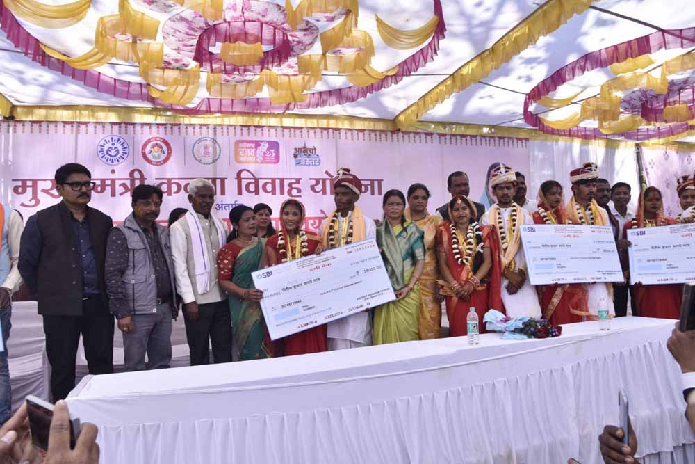 इस पावन अवसर पर मुख्यमंत्री श्री विष्णु देव साय ने वीडियो कॉन्फ्रेंसिंग के माध्यम से जुड़कर नव विवाहित जोड़ों को अपना आशीर्वाद प्रदान किया। मुख्यमंत्री ने अपने संबोधन में योजना की महत्ता पर प्रकाश डालते हुए कहा कि यह योजना गरीब माता-पिता के लिए एक बहुत बड़ा सहारा है। उन्होंने पुरानी यादों को साझा करते हुए बताया कि पूर्व में निर्धन परिवारों को बेटियों के सम्मानजनक विवाह के लिए अपनी संपत्ति तक गिरवी रखनी पड़ती थी, लेकिन तत्कालीन मुख्यमंत्री डॉ. रमन सिंह के नेतृत्व में छत्तीसगढ़ शासन ने 2005 में इस जिम्मेदारी को उठाया। उन्होंने यह भी रेखांकित किया कि वर्ष 2005 में मात्र 5 हजार रुपये की सहायता राशि से शुरू हुई यह योजना आज 50 हजार रुपये तक पहुँच चुकी है, जो गरीब परिवारों के सशक्तिकरण का प्रतीक है।