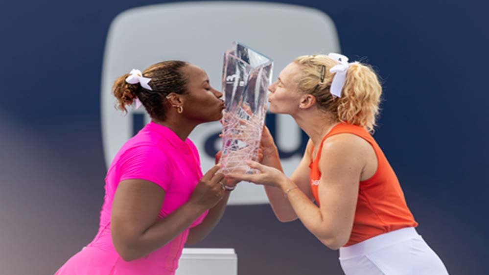 अमेरिका की टेलर टाउनसेंड और चेक गणराज्य की कैटरीना सिनियाकोवा ने मियामी ओपन महिला डबल्स का खिताब अपने नाम किया। टेलर-कैटरीना की जोड़ी ने फाइनल मुकाबले में इटली की सारा एरानी और जैस्मीन पाओलिनी की जोड़ी को 7-6 (0), 6-1 से हराया। इस जीत के साथ टेलर टाउनसेंड और कैटरीना सिनियाकोवा 'सनशाइन डबल' पूरा करने वालीं साल 2019 के बाद पहली जोड़ी बन गई हैं। साल 2019 में यह खास उपलब्धि एलिस मर्टेनस और आर्यना सबालेंका की जोड़ी ने हासिल की थी। टेलर टाउनसेंड और कैटरीना सिनियाकोवा की जोड़ी सनशाइन डबल पूरा करने वाली छठी महिला जोड़ी बनी है। इससे पहले यह मुकाम जाना नोवोत्ना और हेलेना सुकोवा (1990), लिसा रेमंड और रेने स्टब्स (2002), लिसा रेमंड और सामंथा स्टोसुर (2006, 2007), मार्टिना हिंगिस और सानिया मिर्जा (2015), एलिस मर्टेनस और आर्यना सबालेंका (2019) की जोड़ी हासिल कर चुकी हैं।