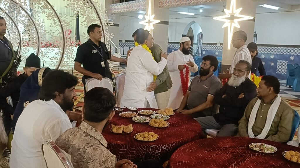 जैनब पैलेस पहुंचने पर अंजुमन इस्लामिया कमेटी एवं मुस्लिम समाज द्वारा उनका गर्मजोशी और आत्मीयता के साथ भव्य स्वागत किया गया। इस अवसर पर पूरे परिसर में खुशनुमा माहौल देखने को मिला।