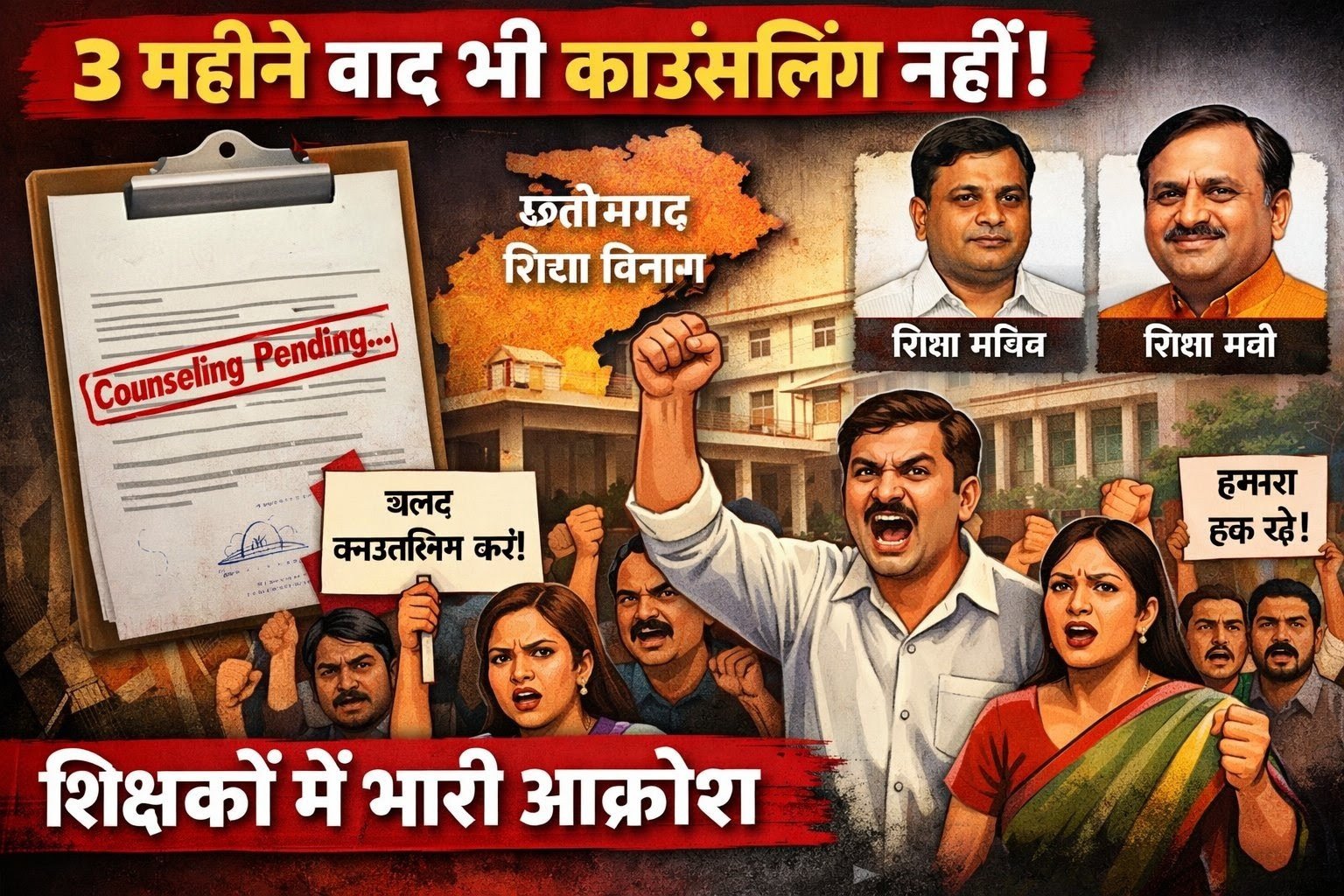 रायपुर। छत्तीसगढ़ में शिक्षा विभाग की कार्यप्रणाली एक बार फिर सवालों के घेरे में आ गई है। दिसंबर माह में जारी हुए प्रमोशन आदेश को आज तीन महीने से अधिक का समय बीत चुका है, लेकिन अब तक संबंधित शिक्षकों की काउंसलिंग प्रक्रिया शुरू तक नहीं हो पाई है। इससे प्रदेशभर के शिक्षकों में भारी नाराजगी और असंतोष देखने को मिल रहा है।