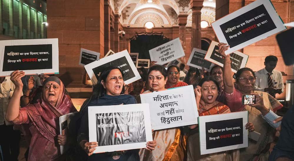 उन्होंने कहा, ’’इस पूरे घटनाक्रम से कांग्रेस गठबंधन का महिला विरोधी चरित्र पूरी तरह से उजागर हो गया है।’’ भाजपा अध्यक्ष ने कहा कि सत्ताधारी पार्टी और प्रधानमंत्री ने यह स्पष्ट कर दिया कि यह ’’श्रेय की लड़ाई नहीं’’ बल्कि महिलाओं के अधिकारों को सुरक्षित करने की लड़ाई है।