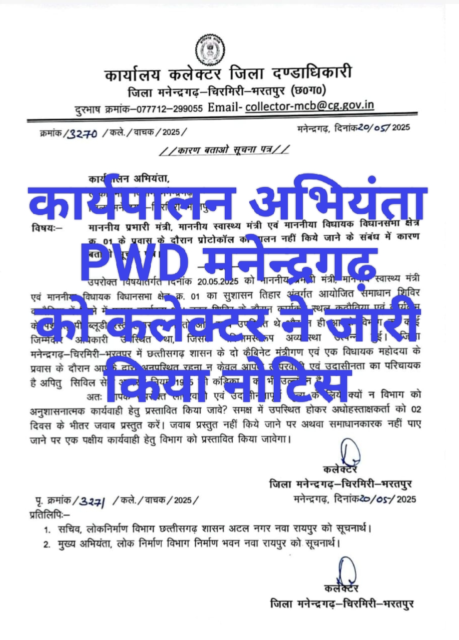 “कटघरे में PWD: मंत्री के कार्यक्रम में गैरहाजिर इंजीनियर पर कलेक्टर का सख्त नोटिस – अफसरशाही की लापरवाही उजागर”