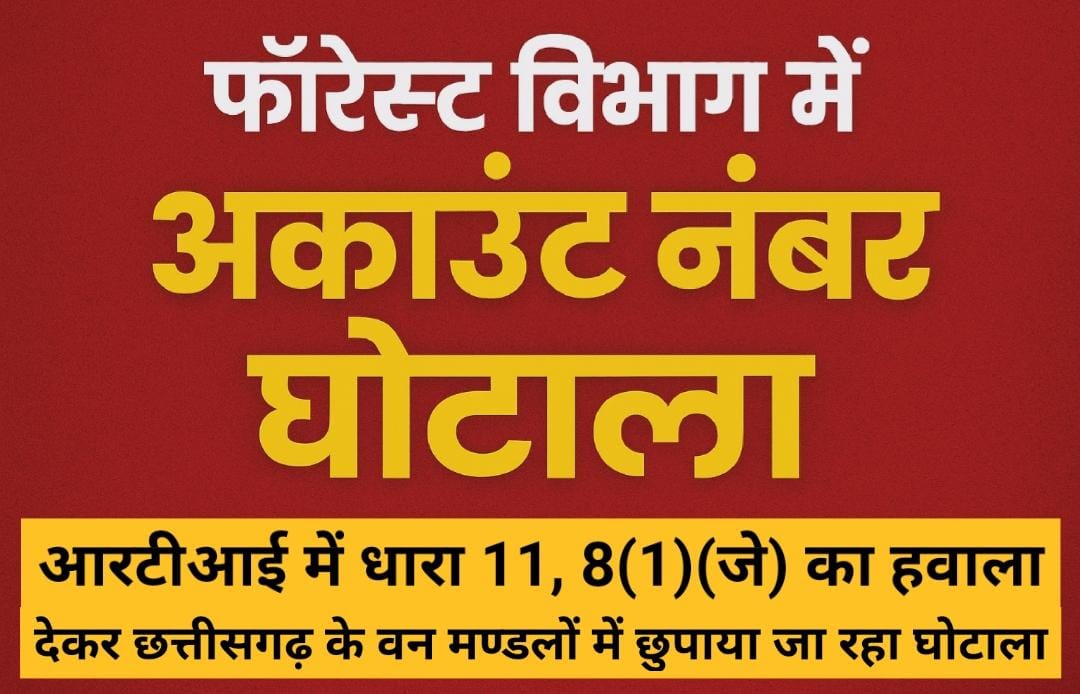 छत्तीसगढ़ फॉरेस्ट विभाग में अकाउंट नंबर की गोपनीयता के नाम पर करोड़ों का घोटाला! आरटीआई जानकारी न देने से बढ़ रहा भ्रष्टाचार, फर्जी खातों में जा रहा मजदूरों का पैसा?