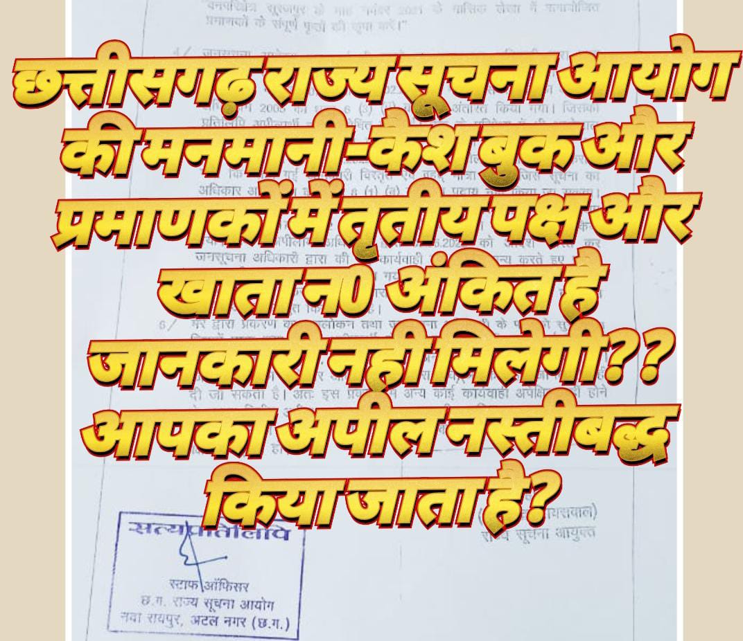 अब्दुल सलाम क़ादरी रायपुर-छत्तीसगढ़ राज्य सूचना आयोग की कार्यप्रणाली पर सवालिया निशान उत्पन्न हो रहा है इसका कारण महज एक है कि अपीलार्थियों द्वारा जानकारी
