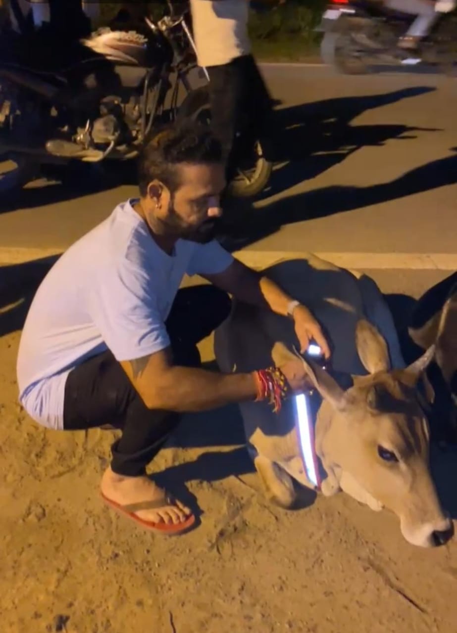 अटल कामधेनु के गौसेवकों के द्वारा आवारा मवेशियों को लगाया गया रेडियम बेल्ट