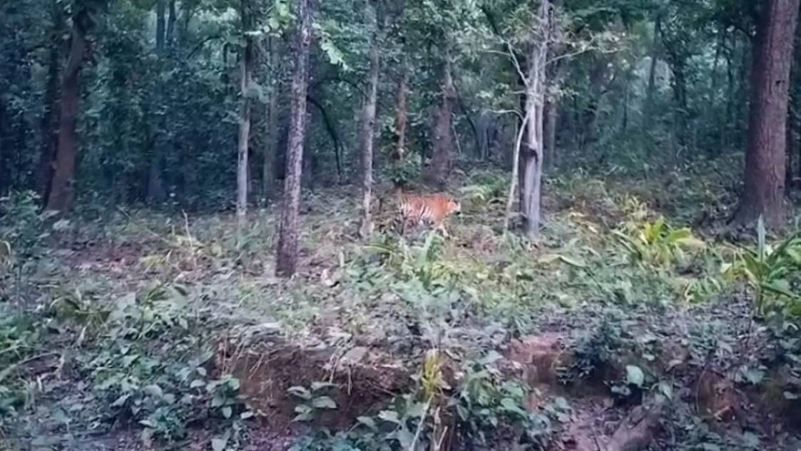 अचानकमार टाइगर रिजर्व में दिखा बाघ : रोमांचित हो उठे पयर्टक, कैमरों में कैद की तस्वीरें