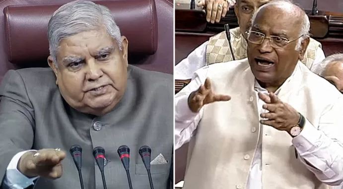 सभापति के खिलाफ अविश्वास प्रस्ताव पर हंगामा, धनखड़-खड़गे आए आमने-सामने
