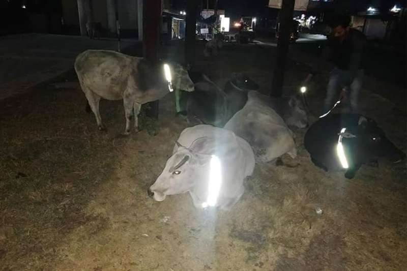 अद्भुत पहल: दुर्घटनाओं से बचाने के लिए मवेशियों को पहना रहे रिफ्लेक्टिव कालर
