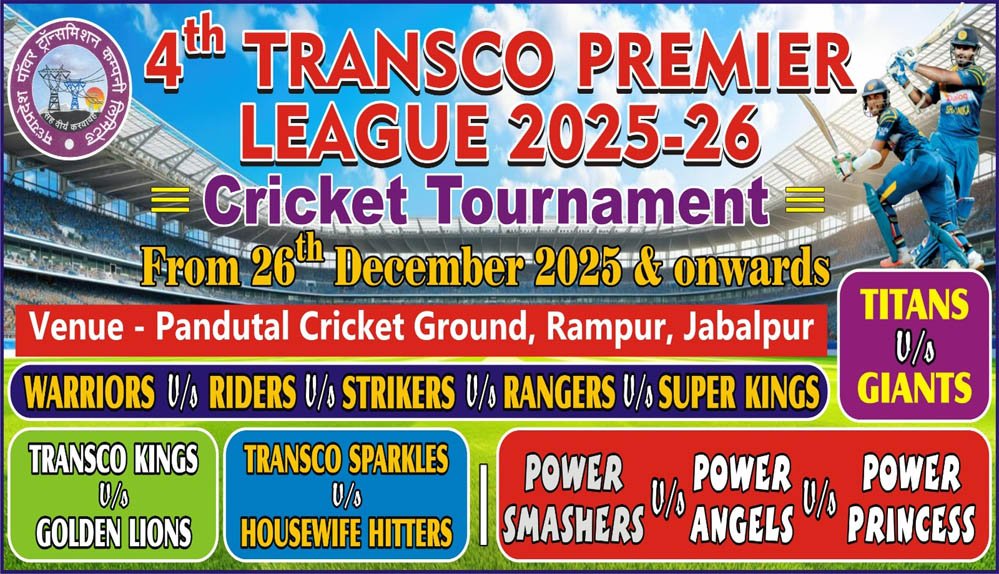 ट्रांसको प्रीमियर क्रिकेट लीग 26 दिसम्बर से जबलपुर एम.पी. ट्रांसको (मध्यप्रदेश पावर ट्रांसमिशन कंपनी) मुख्यालय, जबलपुर में अंतरविभागीय वार्षिक खेलकूद प्रतियोगिता के अंतर्गत “ट्रांसको प्रीमियर