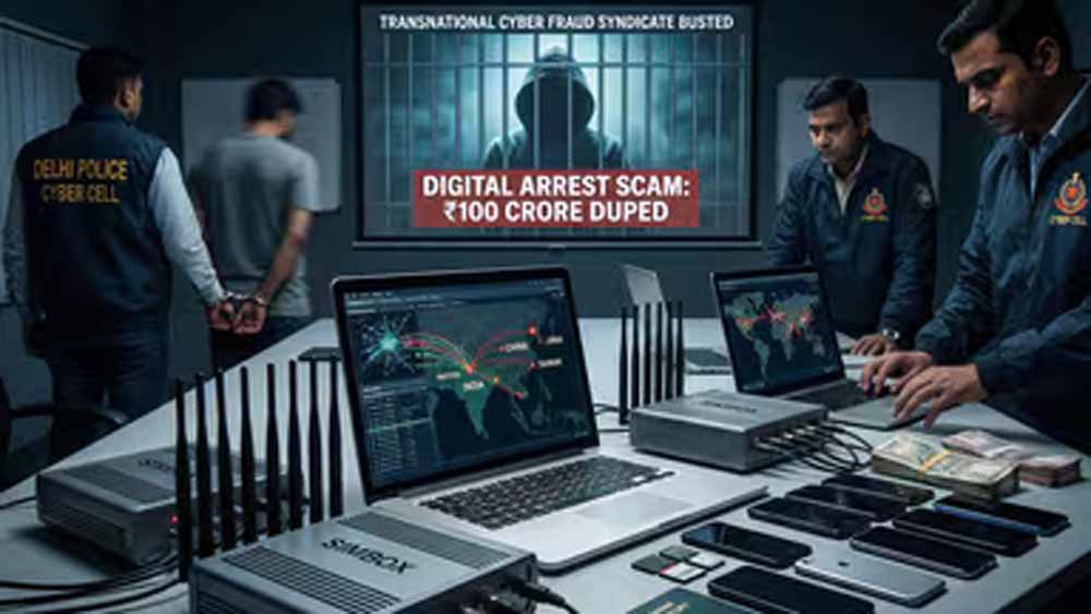 नई दिल्ली. दिल्ली पुलिस ने शनिवार को एक अंतरराष्ट्रीय साइबर ठगी रैकेट का भंडाफोड़ किया है। इसमें हजारों लोगों को कथित तौर पर ‘डिजिटल अरेस्ट’
