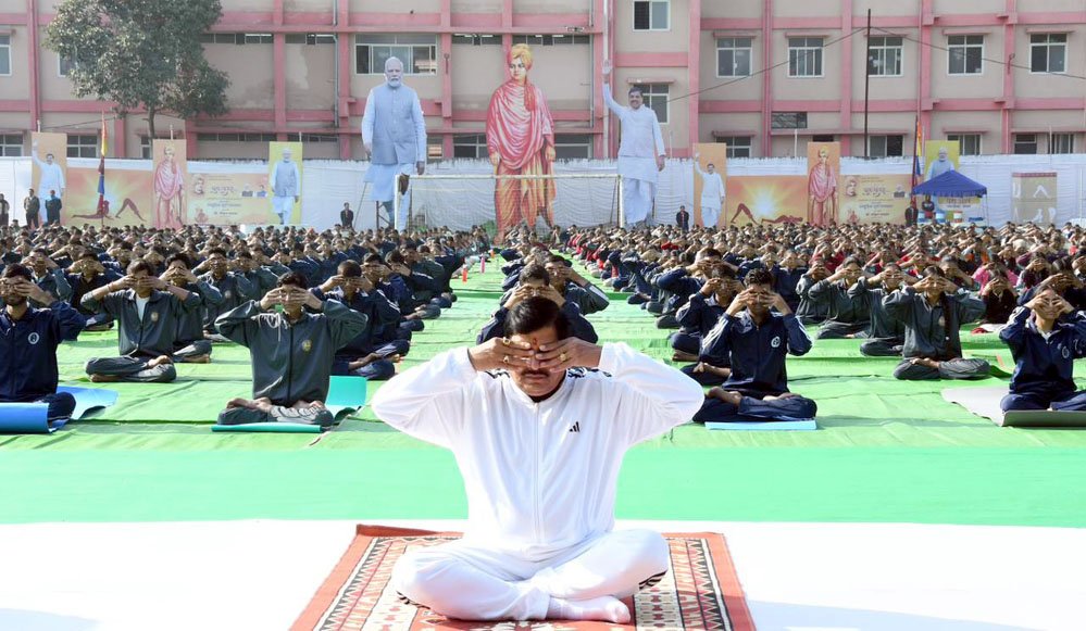 स्वामी विवेकानंद जयंती पर भोपाल में आयोजित सामूहिक सूर्य नमस्कार कार्यक्रम में सीएम ने किया योगाभ्यास