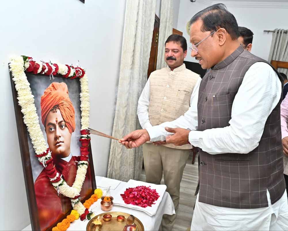 रायपुर. मुख्यमंत्री विष्णु देव साय ने आज स्वामी विवेकानंद की जयंती के अवसर पर मुख्यमंत्री निवास में स्वामी विवेकानंद के छायाचित्र पर पुष्प अर्पित कर