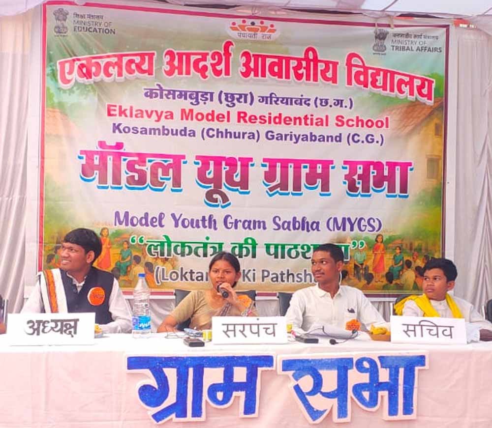 रायपुर. छत्तीसगढ़ के लिए बड़े गौरव के क्षण में, एकलव्य आदर्श आवासीय विद्यालय (EMRS), कोसमबुड़ा ने अपनी तरह की पहली ‘मॉडल यूथ ग्राम सभा’ (MYGS)