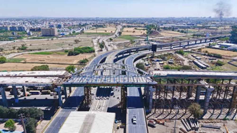 इंदौर शहर के सबसे ऊंचे डबल डेकर फ्लाईओवर के 65 मीटर लंबे स्पान पर बो स्ट्रिंग (गर्डर) को पूल प्रक्रिया से रख दिया गया है।